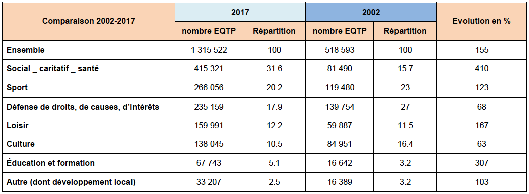 Le nombre d’emplois plein temps est évalué à 1,3 million en 2017 ( vs 519 000 en 2002).