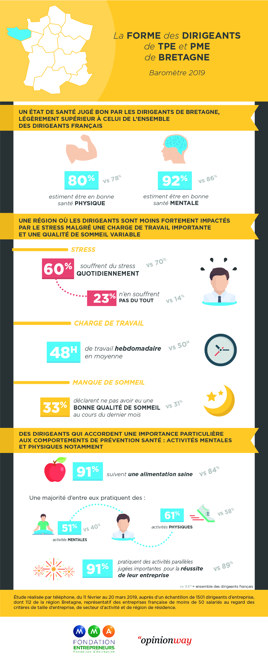 Les dirigeants de la région montrent une véritable résistance au stress comparé au niveau national. Cependant, ils éprouvent des difficultés à préserver leur équilibre entre vie privée et professionnelle. Ainsi, plus de 4 entrepreneurs bretons sur 10 ne parviennent pas à concilier les deux (42 %).