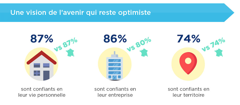 Concernant l’avenir, les entrepreneurs du territoire se montrent très majoritairement confiants pour leur vie personnelle, leur entreprise et leur territoire.