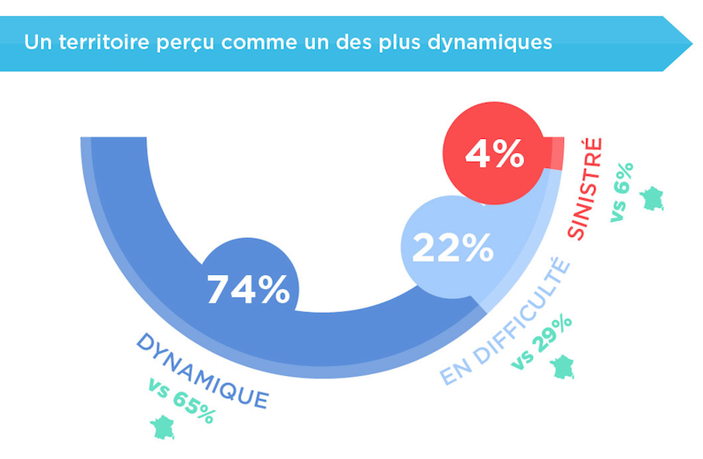 Les entrepreneurs jugent le territoire très dynamique (74 % contre 65 % au national). D’ailleurs, la Bretagne atteint la troisième place derrière l’Ile-de-France et les Pays de la Loire dans le classement des territoires français les plus dynamiques.