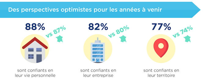Concernant l’avenir, les entrepreneurs du territoire d’Ile-de-France se montrent très majoritairement confiants pour leur vie personnelle, leur entreprise et leur territoire, au-delà de leur confrères au niveau national.
