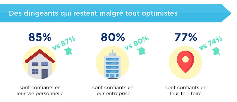 Concernant l’avenir, les entrepreneurs du territoire se montrent très majoritairement confiants pour leur vie personnelle, leur entreprise et leur territoire, au-delà de leur confrères au niveau national.