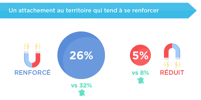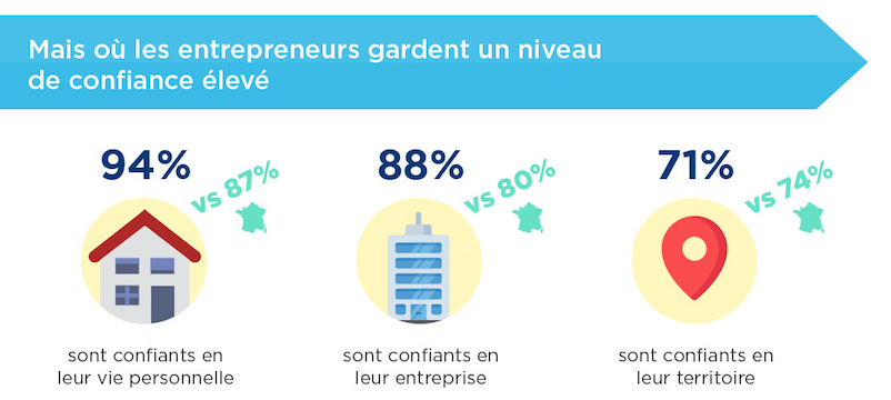 Concernant l’avenir, les entrepreneurs du territoire se montrent très majoritairement confiants pour leur vie personnelle et leur entreprise, au-delà de leur confrères au national. Il sont en revanche 71 % à être confiants en leur territoire (contre 74 % au national).