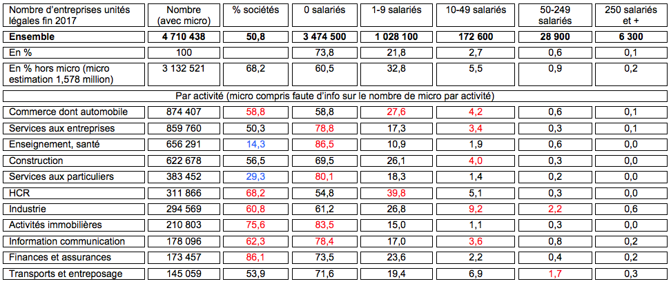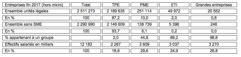 L’insee publie une fois par an un chiffrement du nombre d’entreprises, différenciant les unités légales et les entreprises au sens de la loi SME (regroupant les sociétés mère et leurs filiales).
