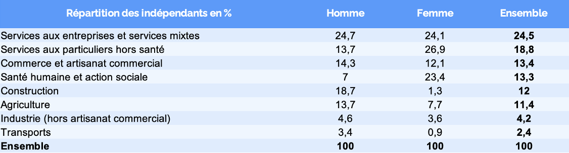 ⇒ Un rappel sur la répartition des indépendants selon l’activité.