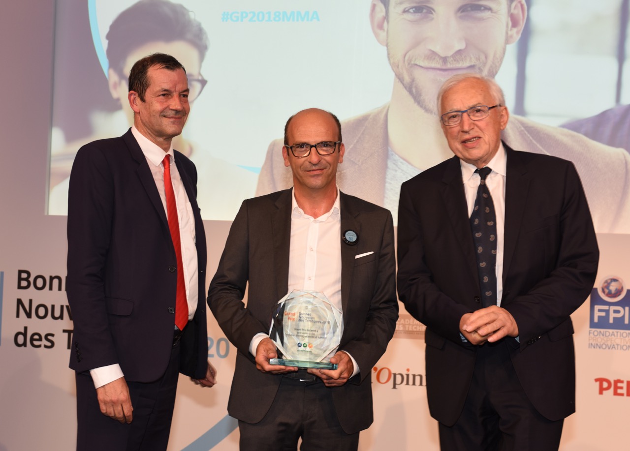 Jean-Paul Augereau, fondateur de Safe Water Cube, à la remise de son prix lors du Grand Prix des Bonnes Nouvelles des Territoires à Paris le 6 juin 2018 :