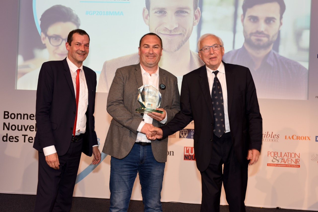 Fabrice Hégron, co-fondateur de la SAS de Nous à Vous, à la remise de son prix lors du Grand Prix des Bonnes Nouvelles des Territoires à Paris le 6 juin 2018 :