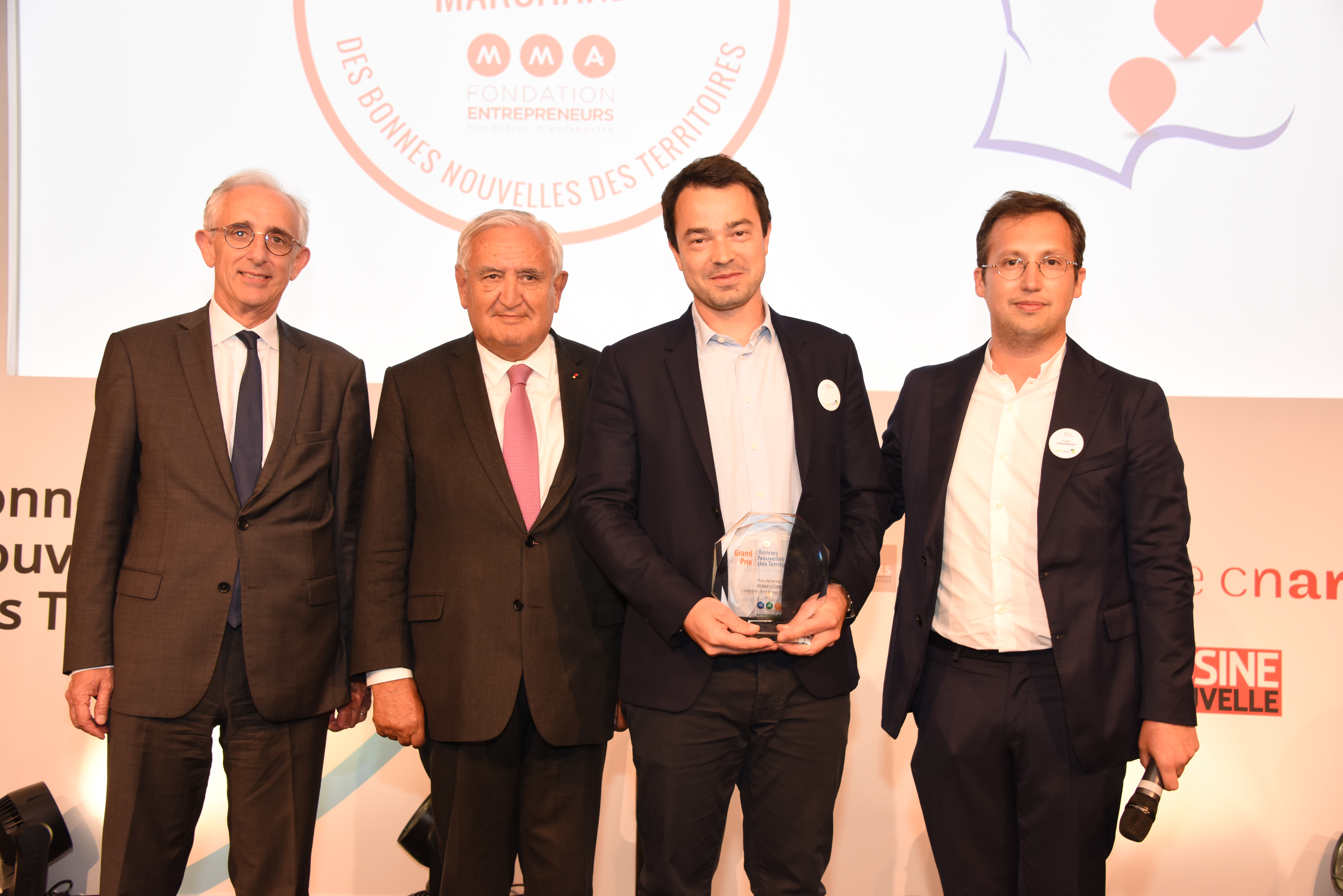 Yoann Guichard, co fondateur et directeur de la centrale d'achat & Guillaume Varobieff, co-fondateur et directeur du réseau lors de la remise du Grand Prix des Bonnes Nouvelles des Territoires à Paris le 5 juin 2019