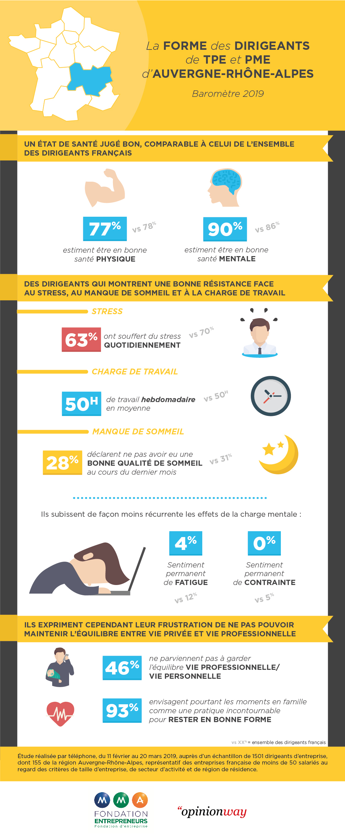 La Fondation d’entreprise MMA des Entrepreneurs du Futur dévoile les résultats de son étude sur l’état de forme physique et mentale des entrepreneurs de PME en Auvergne-Rhône-Alpes.