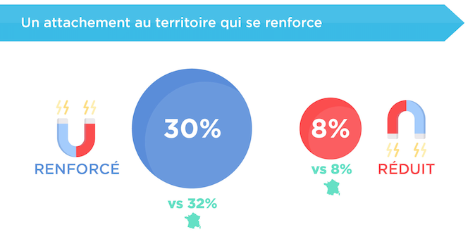 Le lien qu’entretiennent les entrepreneurs avec la région est puissant et durable puisque pour plus de 9 entrepreneur sur 10, ce lien s’est renforcé (30 %) ou maintenu (62 %). Il s’est réduit pour seulement 8 % d’entre eux.