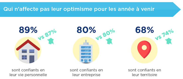 Concernant l’avenir, les entrepreneurs du territoire se montrent très majoritairement confiants pour leur vie personnelle, leur entreprise et leur territoire.