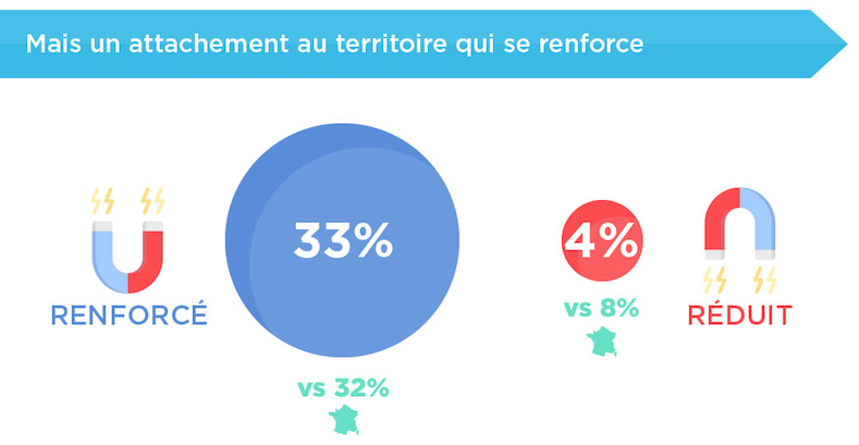 Le lien qu’entretiennent ces entrepreneurs avec leur région est puissant et durable puisque pour plus de 9 entrepreneur sur 10, ce lien s’est renforcé (33 %) ou maintenu (63 %). Il s’est réduit pour seulement 4 % d’entre eux.