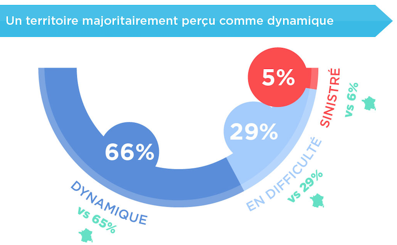 Les entrepreneurs jugent leur territoire très dynamique (66 %). Ils ne sont que 29 % à penser qu’il est en difficulté et seulement 5 % estiment qu’il est sinistré.
