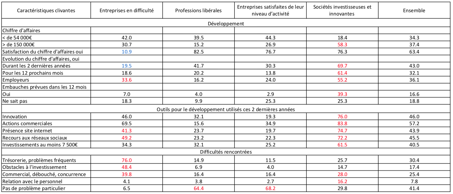 Si les libéraux et les créations en recherche de stabilité économique ont peu agi pour poursuivre leur développement au cours des 2 dernières années, il n’en est rien bien sûr des “sociétés investisseuses” (plus souvent employeuses et en développement constant), mais aussi des entreprises en difficulté, parmi lesquelles certaines se sont impliquées à développer (31% ont un chiffre d’affaires supérieur à 150 000€, 34% y sont employeurs, 70% ont développé des actions commerciales, 46% se sont impliquées dans l’innovation, quasiment la moitié ont un site internet et sont sur des réseaux sociaux), constituant une réelle perte pour notre économie. De quel accompagnement ont-elles bénéficié ? S’il y a quelques données en réponse dans l’enquête Sine, celles ci ne sont pas exploitées dans l’article.