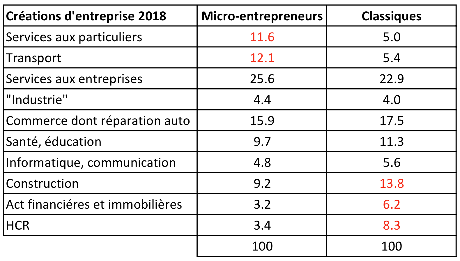 Les données qui suivent sont le fait d’une exploitation de Sine 2018, identifiant les créateurs micro-entrepreneurs et les créateurs classiques (sociétés et entreprises individuelles non micro entrepreneurs) que l’on retrouve sur le site web de l’Insee.