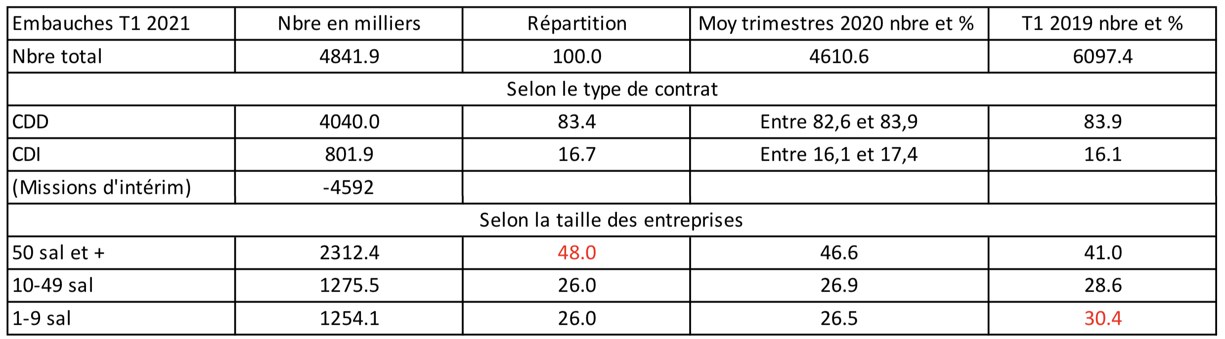 Pour en savoir davantage : Les embauches et les fins de contrat repartent à la hausse au 1er trimestre 2021 | Dares (travail-emploi.gouv.fr)