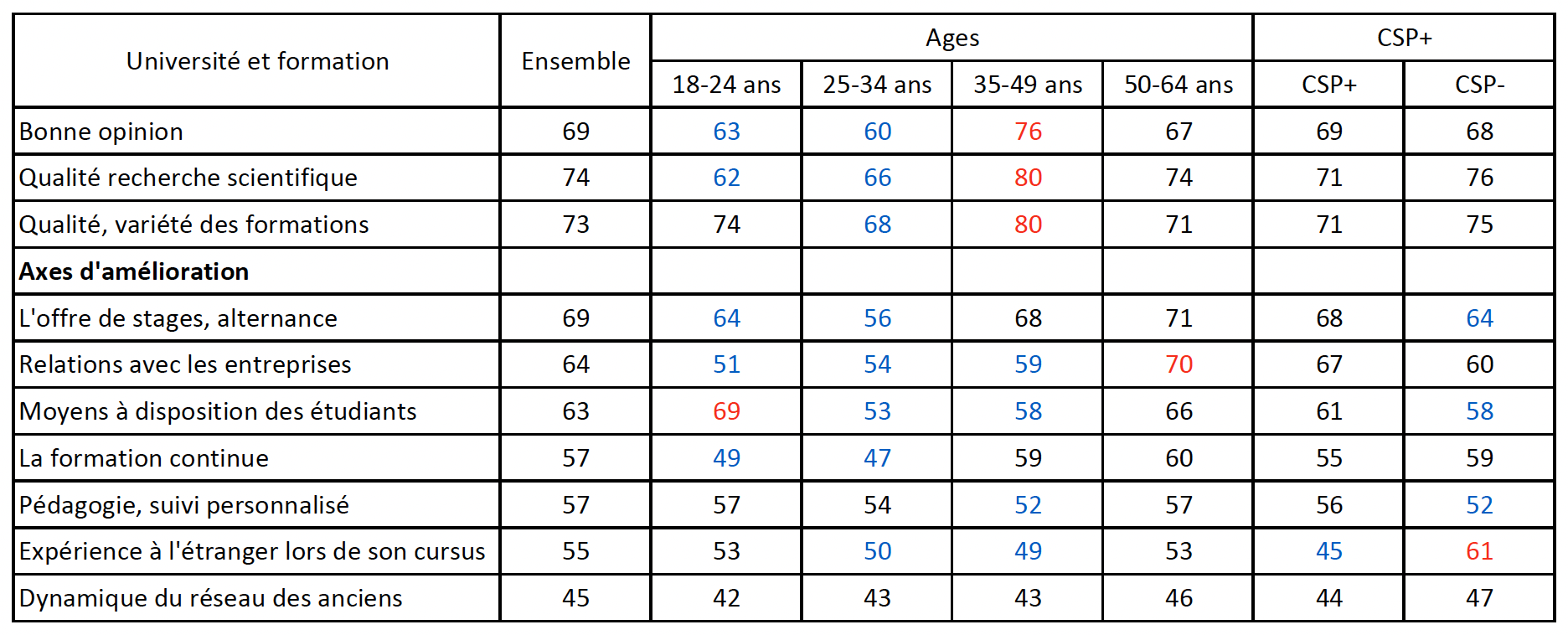 Une étude préalable sur les Français et l’université montre que globalement les moins de 50 ans, tout comme les CSP- sont les moins demandeurs d’amélioration.