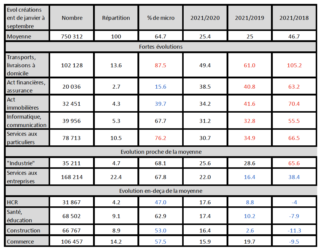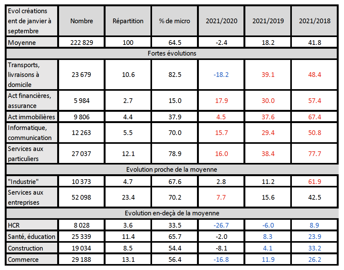 Analyse des créations d'entreprise de septembre 2021 en données brutes, issues de l'Insee, André Letowski