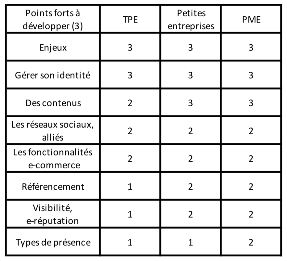 ♦ Comment ? Les TPE privilégient les réseaux sociaux (80%) devant le web (67%), alors que les entreprises de 10 salariés et plus privilégient le web (76-81%) tout en utilisant largement les réseaux sociaux (76-79%).