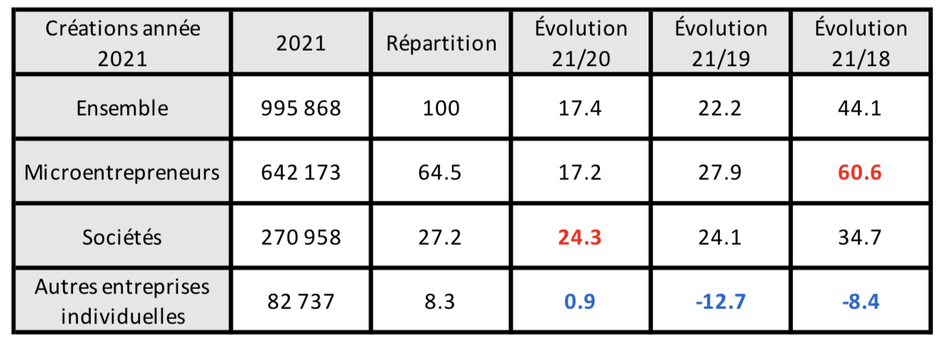 Source : Évolution des chiffres de la création d'entreprise à partir des données brutes de Siren/Insee, André Letowski, janvier 2022