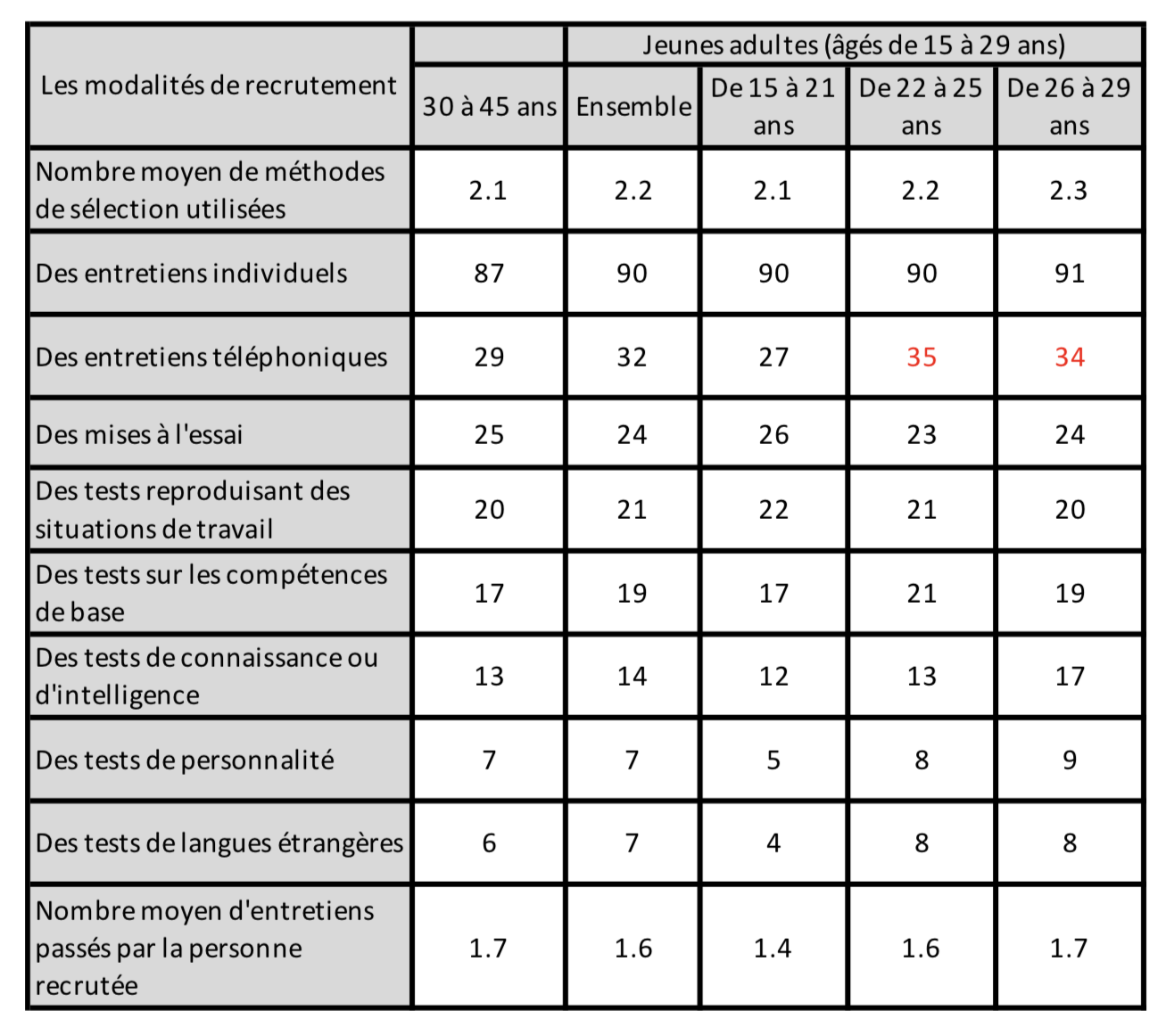 Noter que les jeunes de 22 à 25 ans sont un plus souvent embauchés suite à un rappel de l’employeur, après un stage réalisé dans l’entreprise ou du fait d’une expérience d’emploi antérieure.