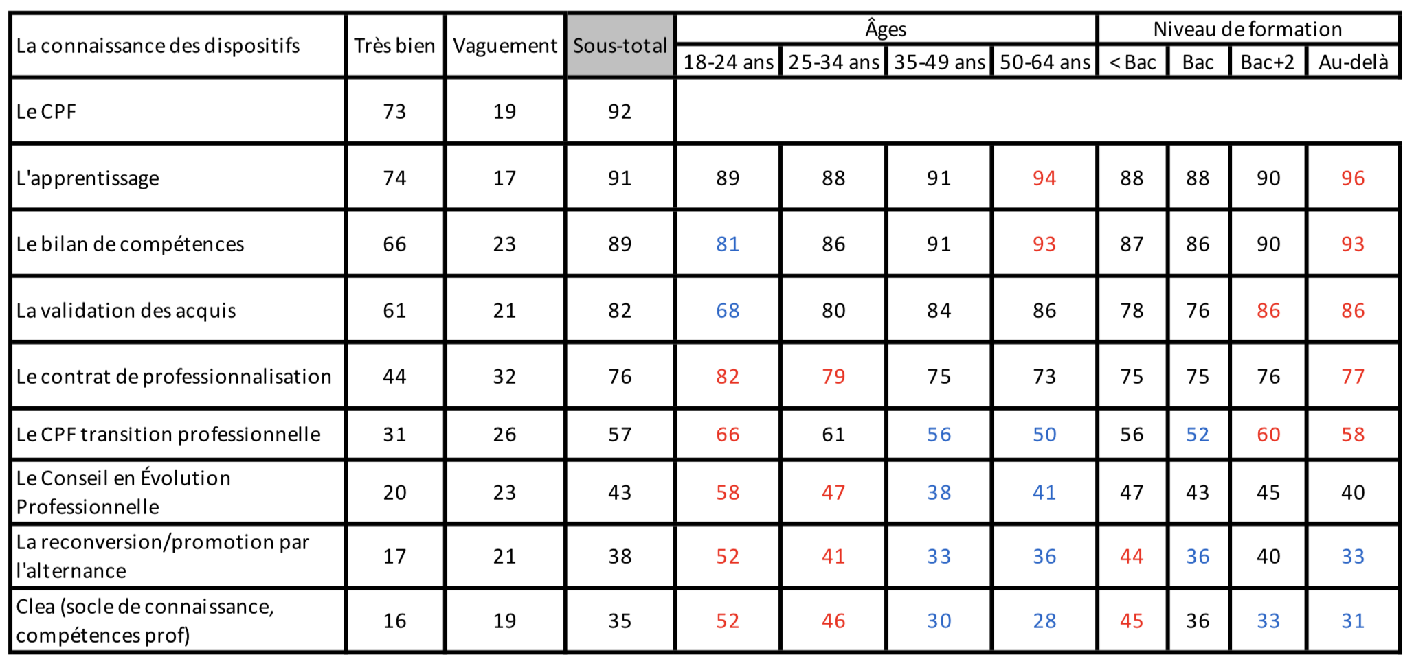⇒ La connaissance des dispositifs de formation