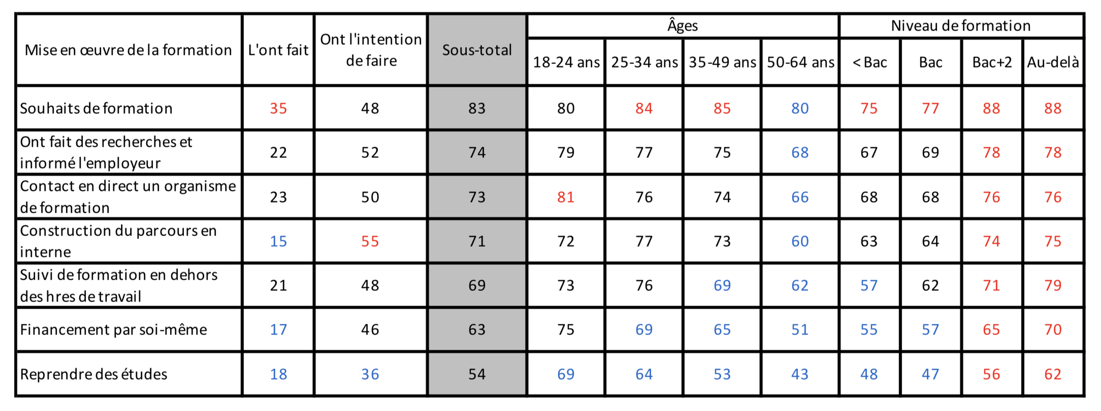 ⇒ Le souhait de suivre une formation professionnelle au cours des 12 prochains mois