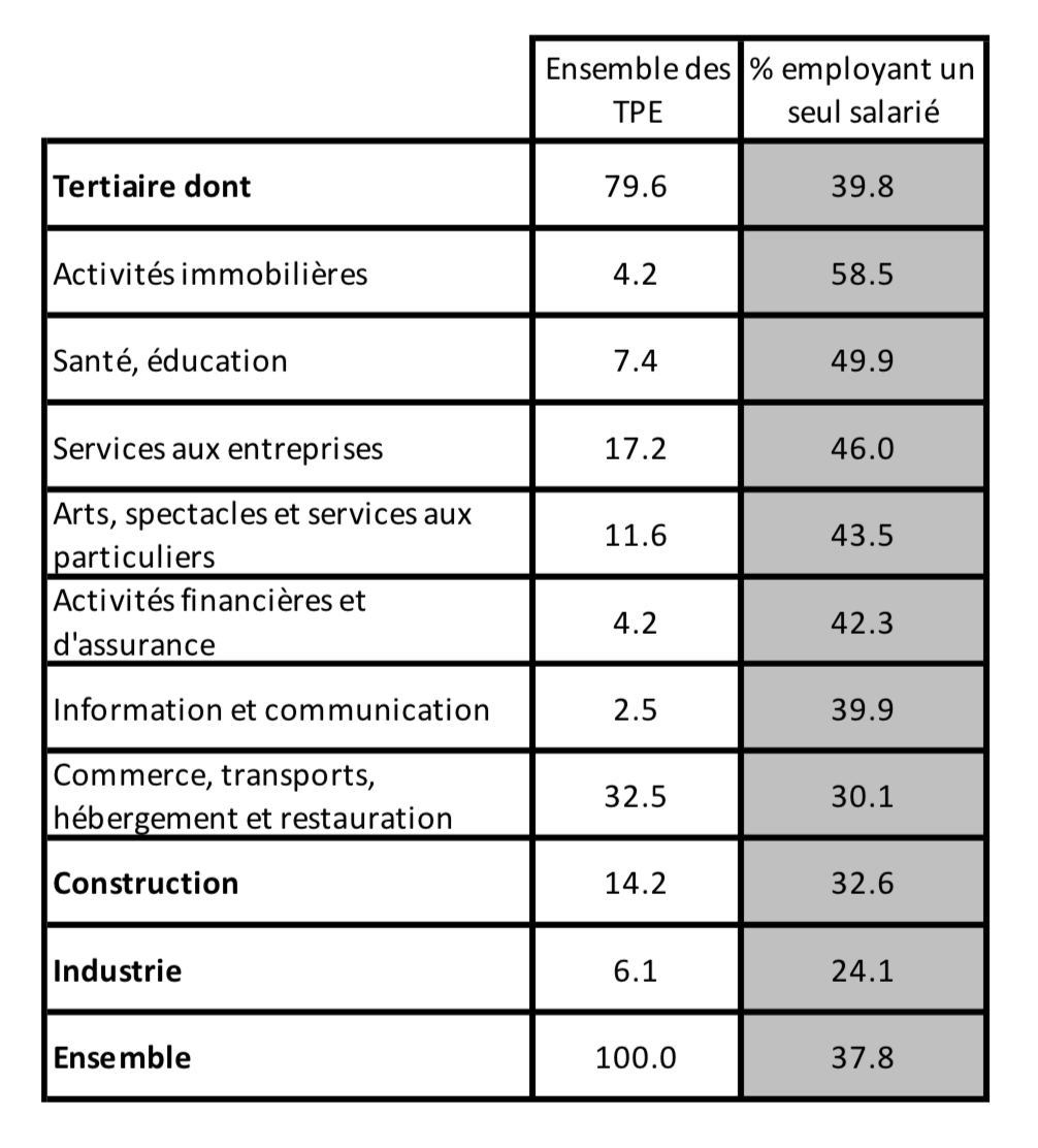 Les activités avec un seul salarié sont surtout localisées dans les services de type “intellectuels”, exigeant un niveau de diplôme élevé.