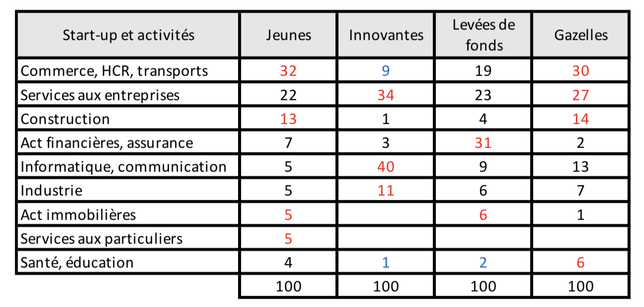 Pour les gazelles, les entreprises innovantes et les jeunes entreprises, l’effectif a baissé respectivement de 14, 7 et 4% entre le dernier trimestre de 2019 et le premier de 2020, alors que celui des entreprises ayant levé des fonds est resté stable.Pour en savoir davantage : page 56-67 dans “Caractéristiques et dynamiques de l’emploi dans les start ups en France” Insee, les entreprises en France, édition 2021, lu décembre 2021