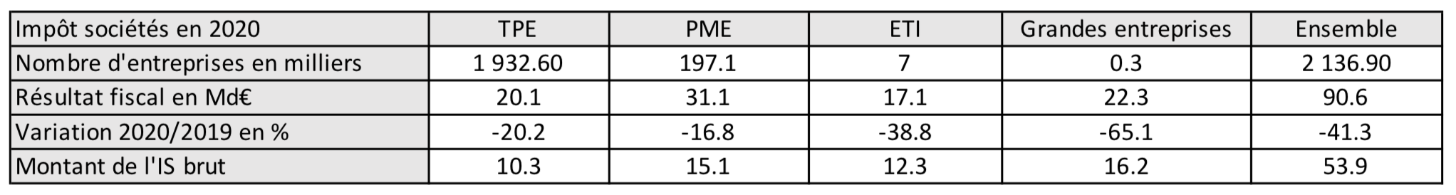 Pour en savoir davantage : "L’impôt sur les bénéfices des entreprises en 2020" DGFIP Statistiques N°6, mars 2022