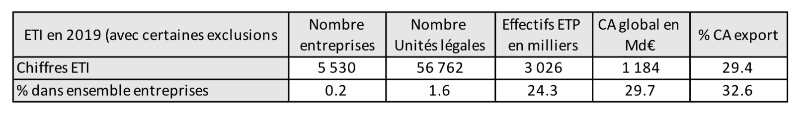 - Entre ces deux extrêmes, 5 900 ETI et 153 000 PME emploient respectivement 25 et 30% des salariés et génèrent 25% et 23% de la VA.