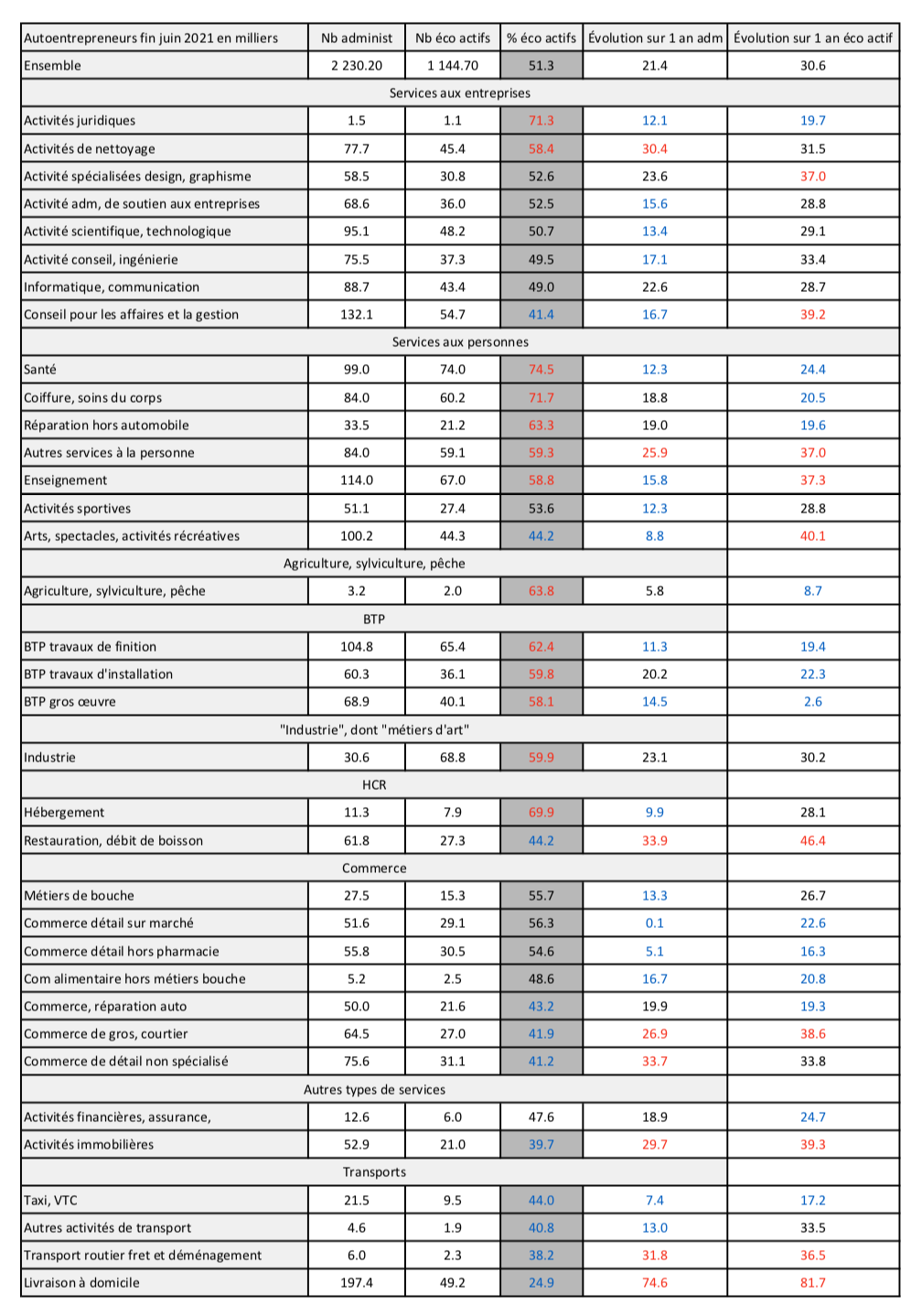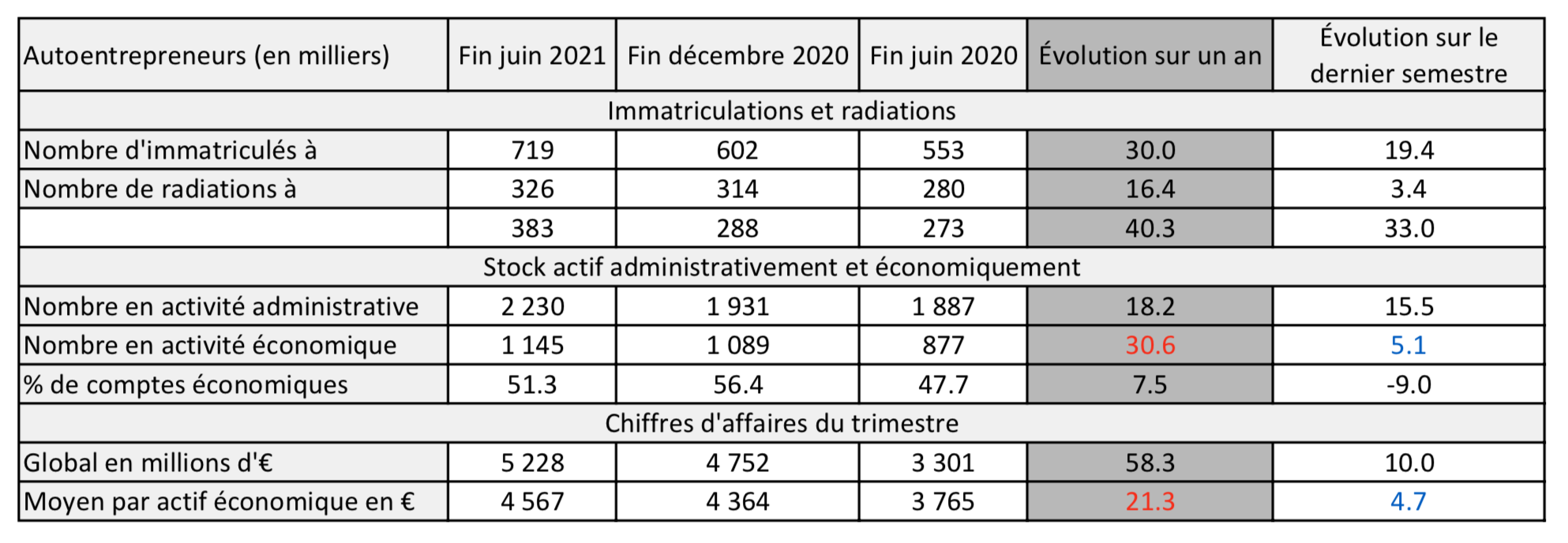 Pour en savoir davantage : "Les autoentrepreneurs* fin juin 2021", Urssaf, Stat'ur N° 337, janvier 2022