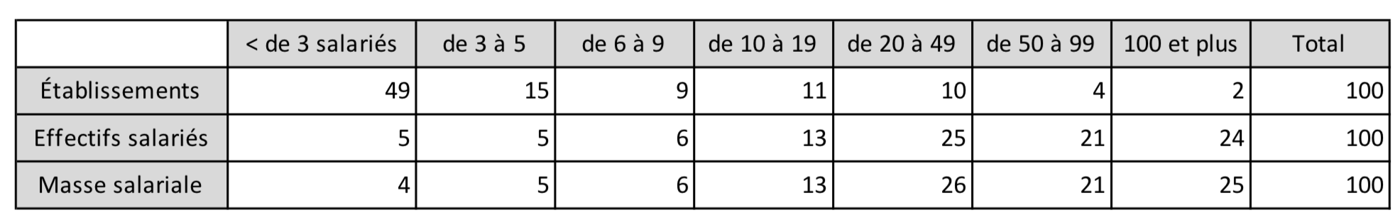 Si les plus petites tailles d’établissement employeur sont en légère hausse, ceux en taille plus importante sont en baisse.