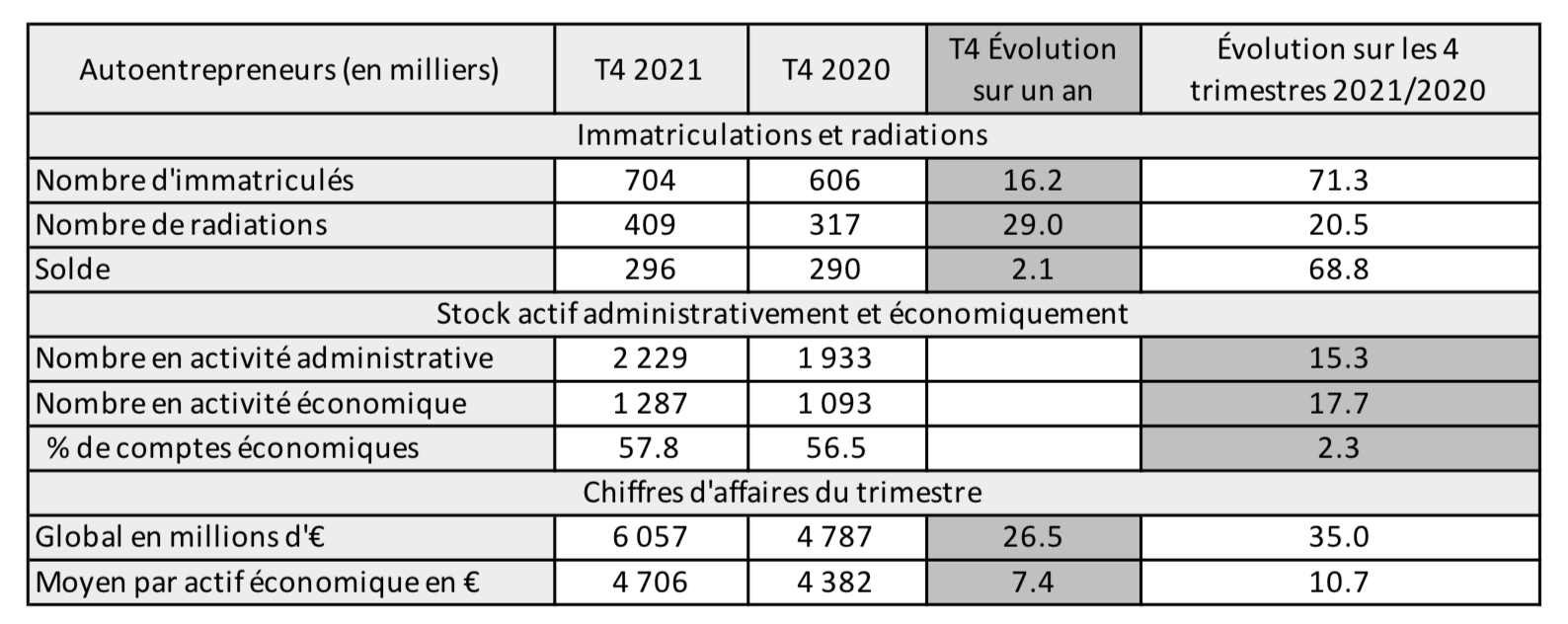 Pour en savoir davantage : "Les autoentrepreneurs fin décembre 2021", Urssaf, Stat'Ur N°346, juillet 2022