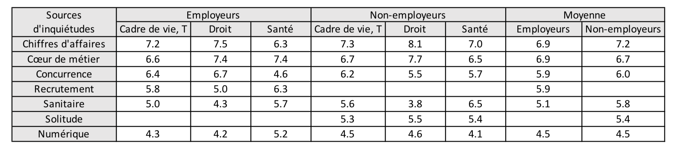 Ajoutons pour les non employeurs de 50 ans et plus, la retraite et son financement et du côté des employeurs, une série d’items porte sur les acteurs de l’entreprise et son organisation (associé, personnel, collaborateur) et sont associés aux difficultés inhérentes au développement de l’entreprise et à la gestion entrepreneuriale.