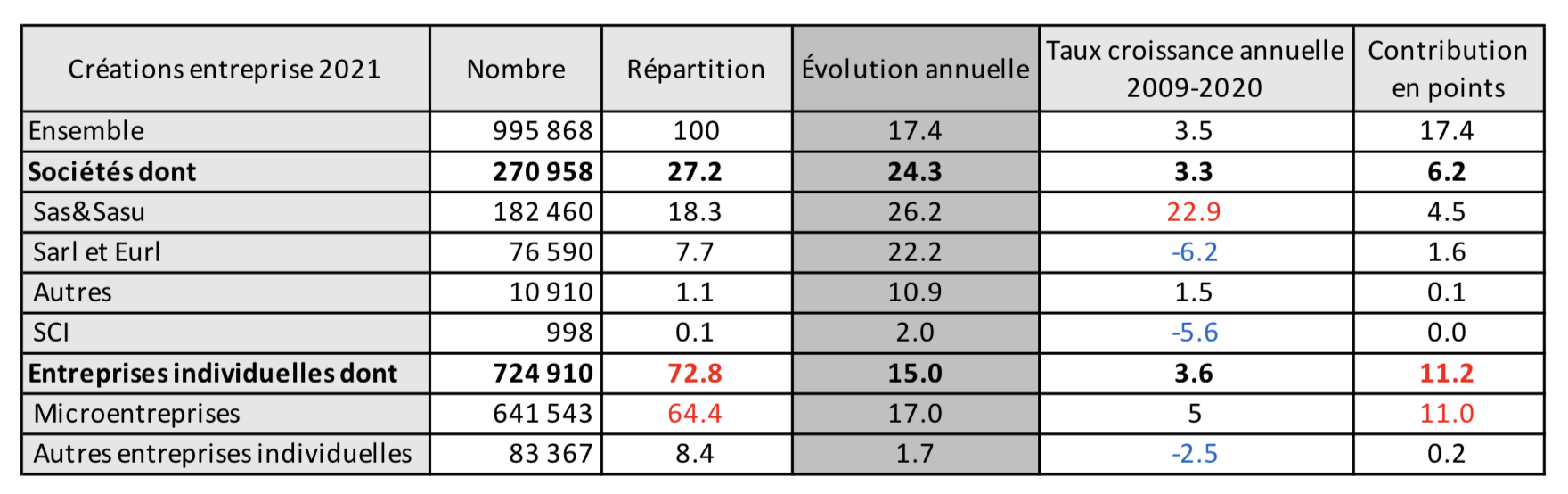 Pour en savoir davantage, notamment au nouveaux des différents espaces : "La création d'entreprise en France année 2021", Bpifrance, juin 2022