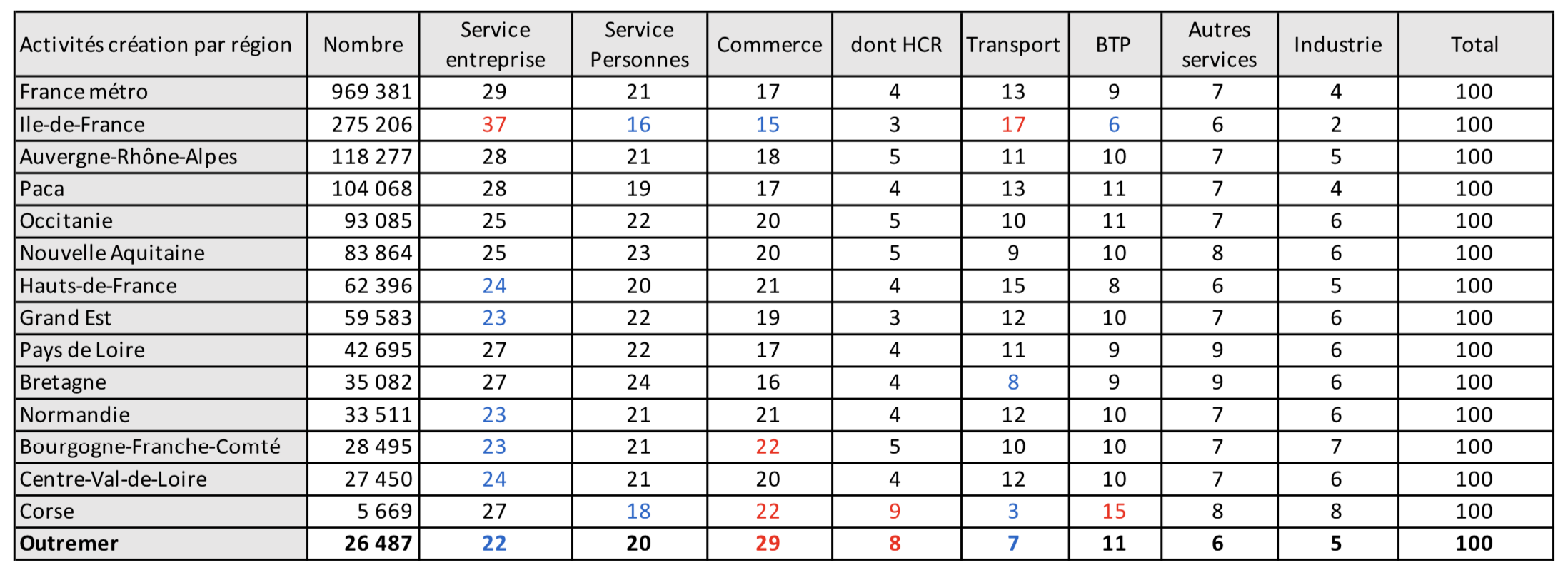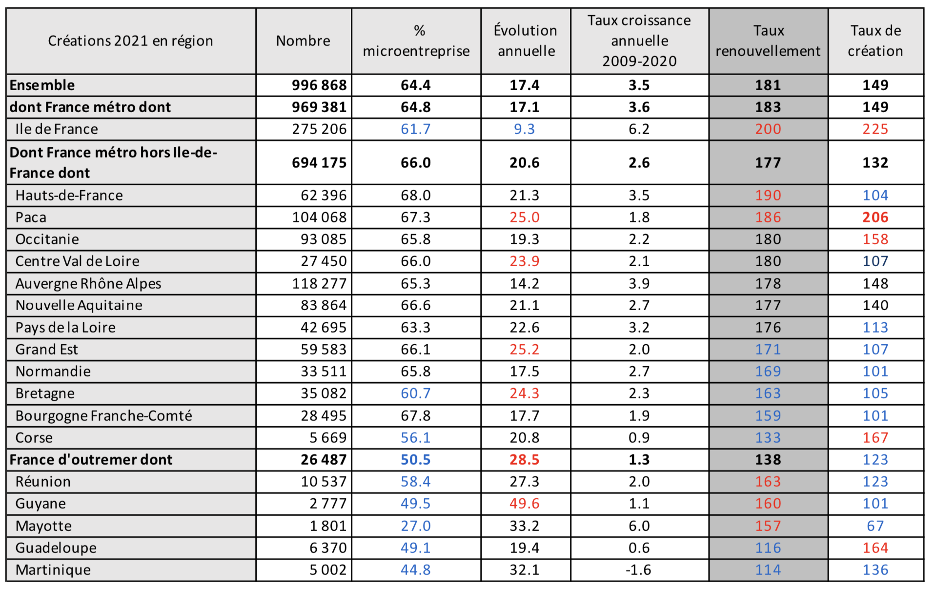 “La-sur performance en 2021 des régions métropolitaines hors Ile-de-France montre un phénomène de surcompensation qui va bien au-delà d’un simple phénomène de rattrapage provoqué par le recul des créations en 2020 dans ces régions.”