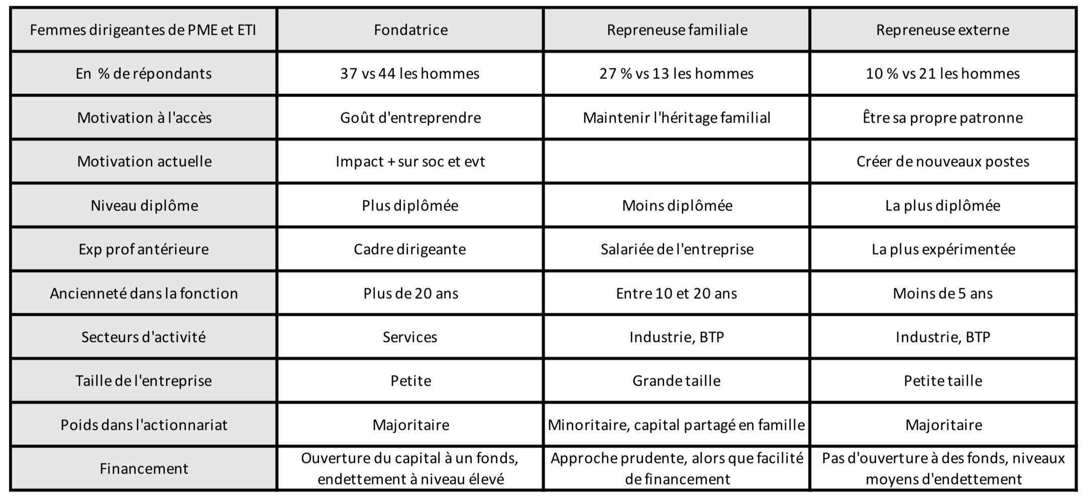 ⇒ Les dirigeantes de PME-ETI se distinguent de leurs homologues masculins à plusieurs égards :