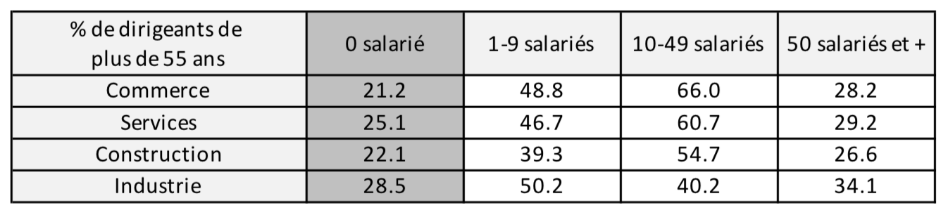 En effet, la majorité des salariés travaillent dans des entreprises de services (504 300, soit 62,5 % des emplois concernés), 165 400 emplois dans les commerces, 95 930 dans les entreprises de la construction et enfin 41 440 au sein d’entreprises industrielles, totalisant 807 000 emplois ; en prenant l’hypothèse d’un départ en retraite du dirigeant à l’âge de 65 ans, chaque année 80 700 emplois sont potentiellement menacés de disparaitre si ces entreprises ne sont pas reprises.