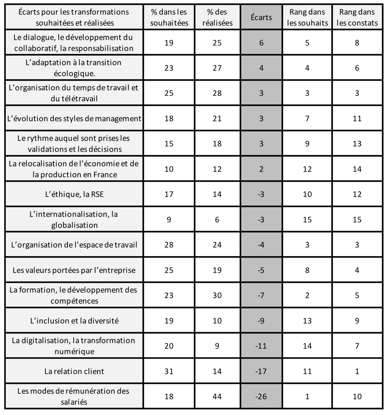 ⇒ Les principales transformations des entreprises souhaitées ou constatées