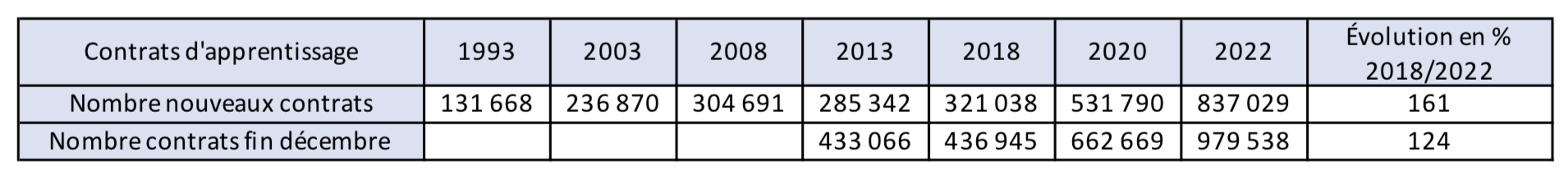 Pour en savoir davantage : "Le contrat d'apprentissage", Dares, tableau de données, mars 2023