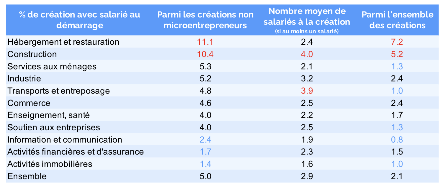 5 % des nouvelles entreprises emploient au moins un salarié au moment de leur création