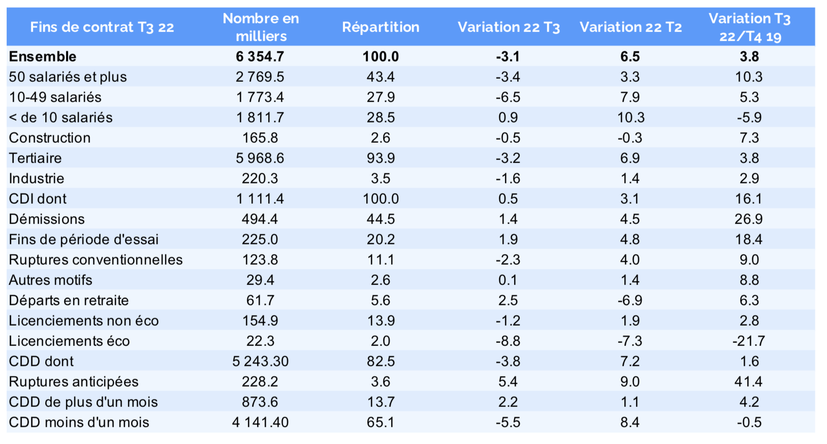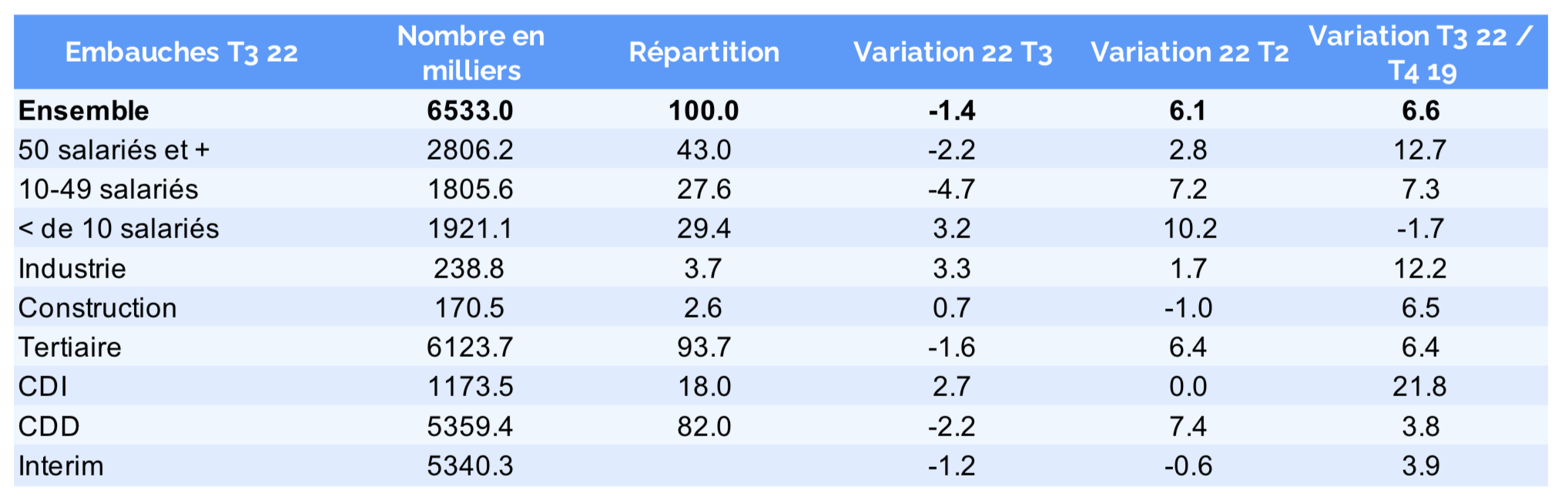 Pour en savoir davantage : "Les embauches se replient légèrement au 3e trimestre 2022", Dares indicateurs N°1, janvier 2023