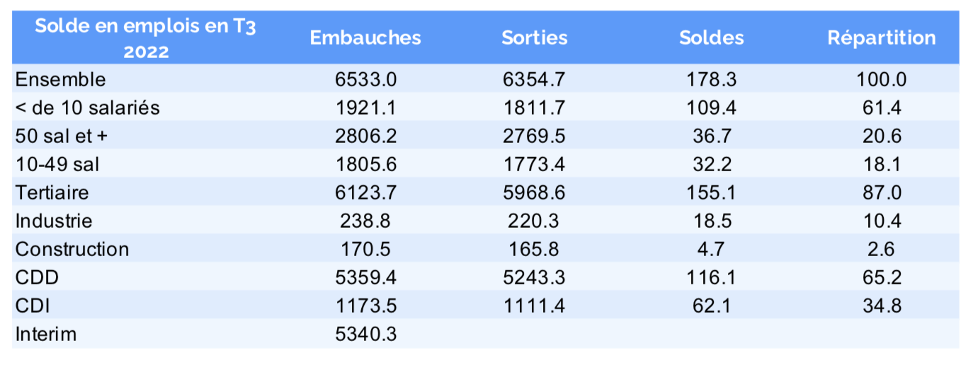 Le 3e trimestre 2022 a toutefois permis un solde net d’emplois de 178 300 emplois