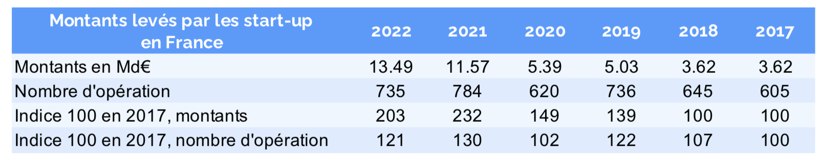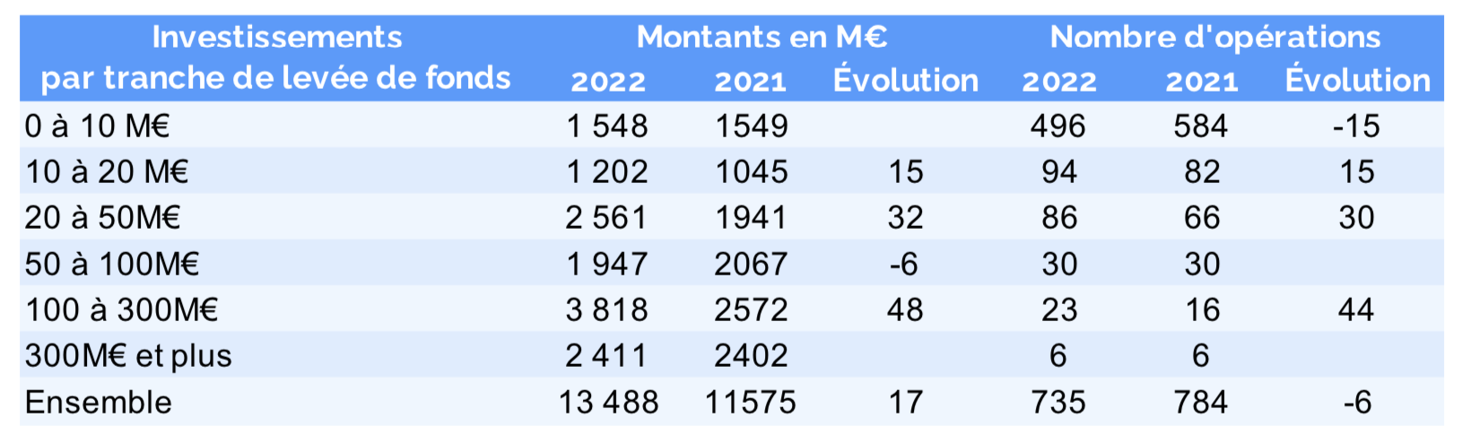 Toutefois, l’exercice 2022 fut loin d’être un long fleuve tranquille : après avoir bondi 63% au premier semestre, les fonds levés ont reculé de 21 % lors du second.