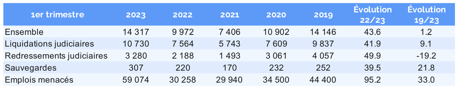 Pour en savoir davantage : "Étude de défaillances et sauvegardes des entreprises en France au 1er trimestre 2023'", Altares, avril 2023