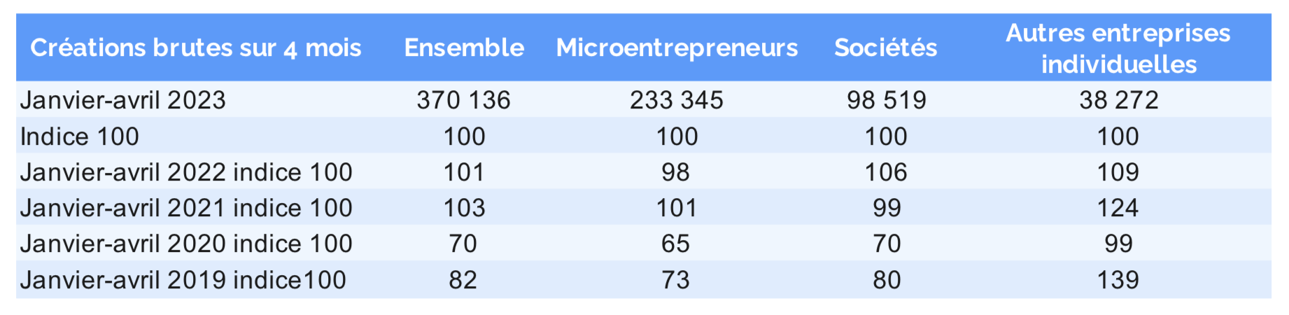 Source : Chiffres création d'entreprise des 4 premiers mois 2023, données Insee, exploitation Letowski