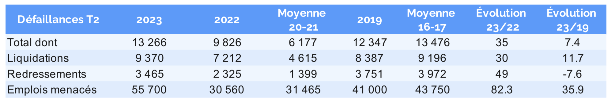 Pour en savoir davantage : "Étude de défaillances et sauvegardes des entreprises en France au 2e trimestre 2023", Altares, juillet 2023