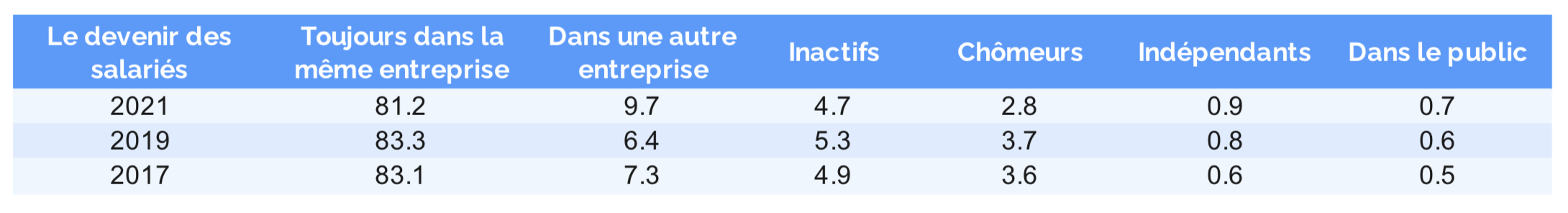 Méthodologie : enquête Emploi sur le devenir des salariés (excluant les intérimaires).