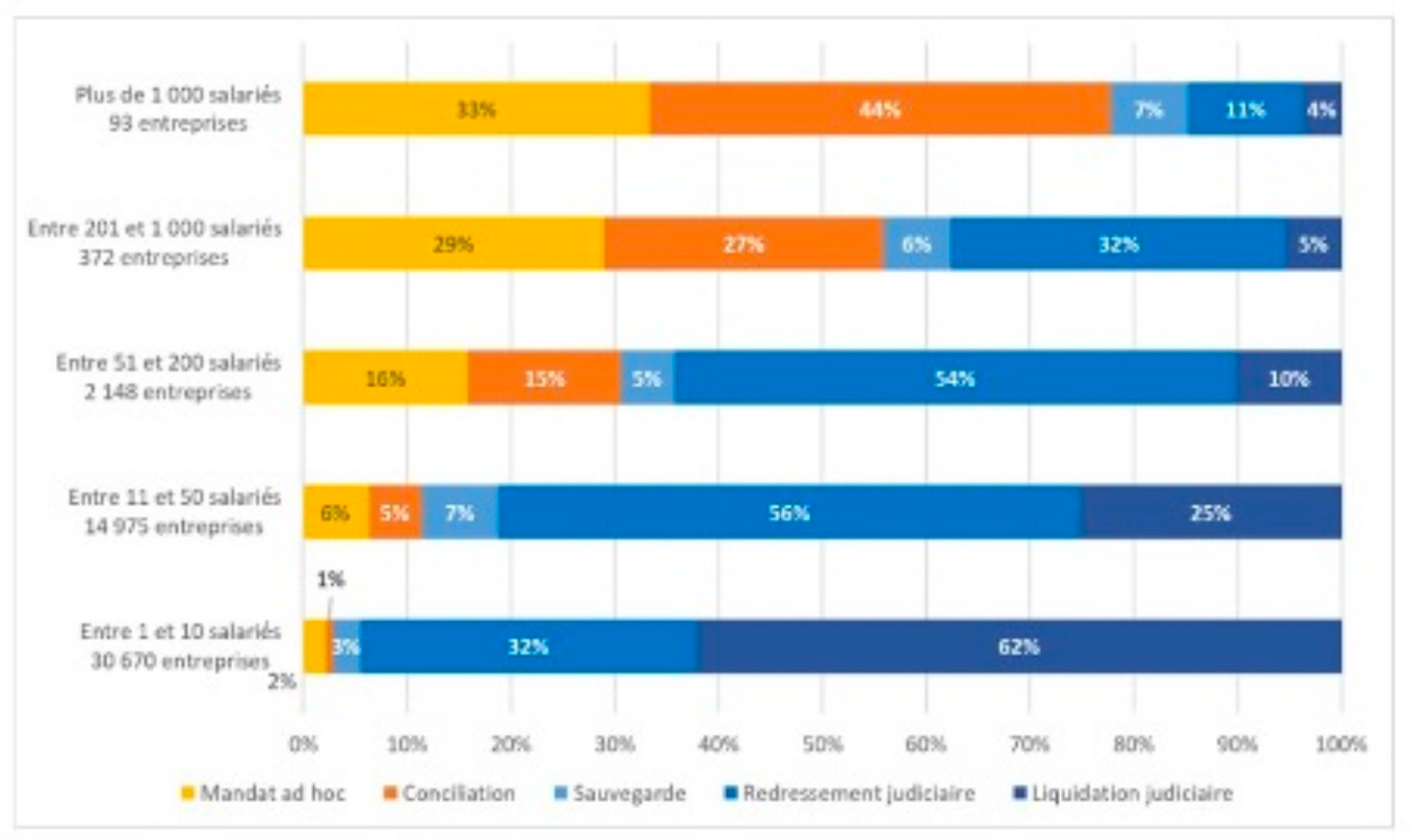Seules 3 % des TPE/PME de moins de 10 salariés et 11 % des entreprises de 10 à 50 salariés en difficulté font appel à des mesures de prévention lorsqu'elles sollicitent le Tribunal de commerce en ouverture d'une procédure.